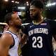 After Curry took a shot to the nose early in the game, Warriors trainer Drew Yoder gave Curry tissues to stop the bleeding. Though the incident caused Curry to become upset with officials, Curry showed no signs of discomfort after Pelicans guard Jrue Holiday pushed him toward the stanchion underneath the basket with 5:08 left in the third quarter.